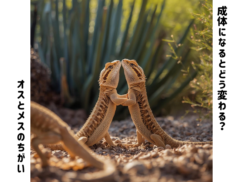 性別によって基本的な飼育方法が変わるわけではありません。「大人になってからのお楽しみ」として成長を待つのも、フトアゴ飼育の大きな醍醐味ですよ!