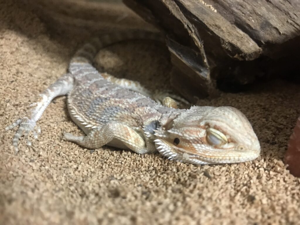 【※注意!】 無理にひっくり返したり、急に強くしっぽを持ち上げたりしてはいけません。フトアゴがびっくりして暴れてしまい、怪我をさせる恐れがあります。必ず「ゆっくり・優しく」を心がけてくださいね。